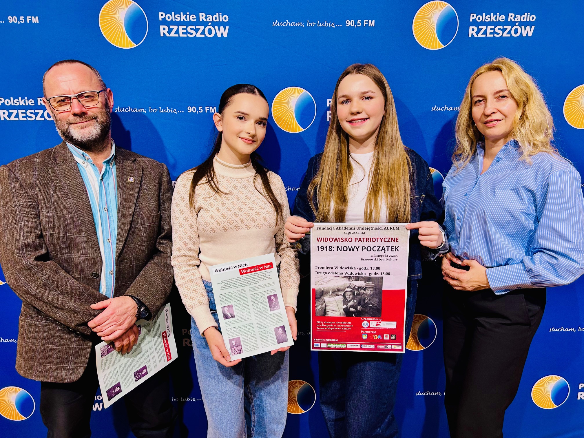W „Świecie Młodych” przedstawiciele Fundacji Akademii Umiejętności AURUM – Magdalena Korona i Roman Walczak oraz uczennice, a jednocześnie wokalistki Akademii Wokalno Aktorskiej MF. Artis, współpracującej przy realizacji projektu – Anna Wojtal i Marlena Brodzicka, mieli przyjemność odbyć rozmowę z Panią Redaktor Bernadetą Szczyptą. Rozmawiali o Widowisku Patriotycznym „1918: NOWY POCZĄTEK”, które 11 listopada zostanie wystawione w Brzozowskim Domu Kultury. Projekt dofinansowany jest ze środków otrzymanych z Ministerstwa Obrony Narodowej.
