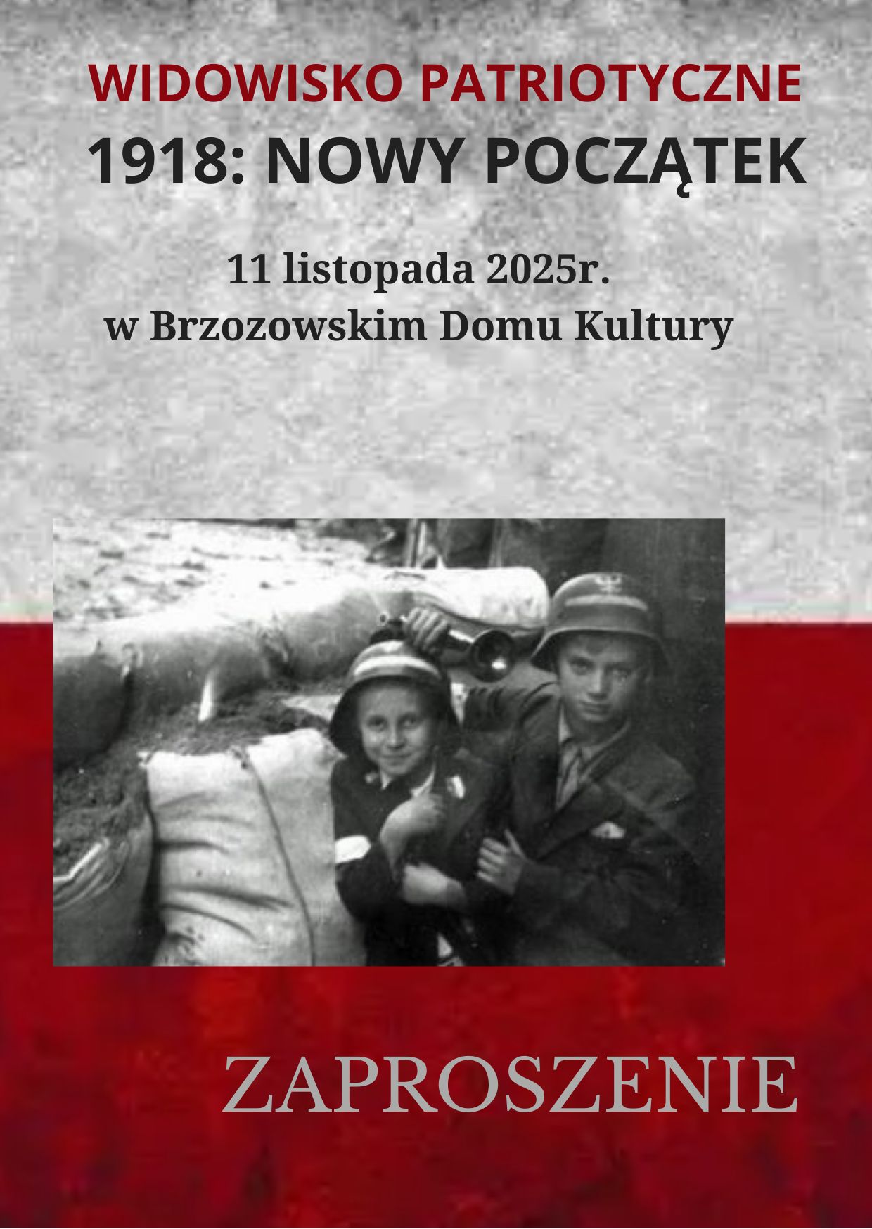 Trwają intensywne przygotowania do widowiska patriotycznego „1918: Nowy Początek”, które odbędzie się 11 listopada 2025 roku w Brzozowskim Domu Kultury. Hasło przewodnie inicjatywy brzmi „Wolność w Nich, Wolność w Nas”. Wydarzenie stanowi artystyczną formę uczczenia odzyskania przez Polskę niepodległości i łączy w sobie koncert, muzykę na żywo oraz prelekcje historyczne.
