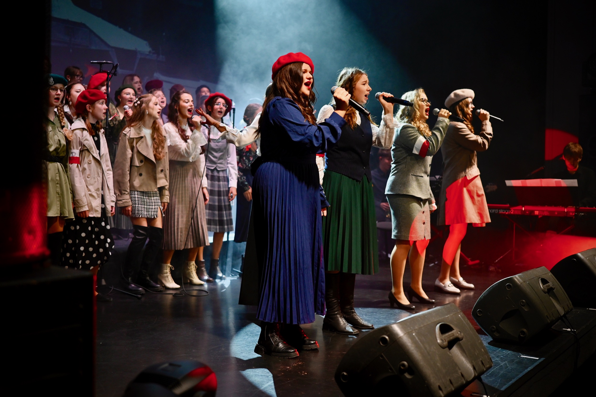Za nami okres wytężonej pracy nad opracowaniem repertuaru. Po konsultacjach historycznych z Agnieszką Wójcik i Romanem Walczakiem, ostatecznego wyboru utworów dokonały Magdalena Korona i Mariola Friedek. Proces selekcji nie należał do łatwych – repertuar jest wymagający zarówno wokalnie, jak i emocjonalnie – jednak młodzi wykonawcy z ogromnym zaangażowaniem podejmują to wyzwanie, tworząc pełne pasji widowisko. Za kulisami trwają intensywne próby, podczas których uczestnicy pracują nad każdym szczegółem – od interpretacji utworów po spójność przekazu scenicznego. Ich determinacja i artystyczna wrażliwość sprawiają, że spektakl zapowiada się jako wyjątkowe wydarzenie, będące nie tylko koncertem, lecz także poruszającą lekcją historii i wspólnotowego przeżycia.